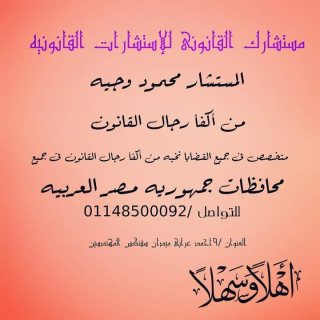 ش مكتب مستشارك القانوني للمحاماه و الاستشارات القانونية مكتب المستشار/ مصطفي محمد طارق : محامي