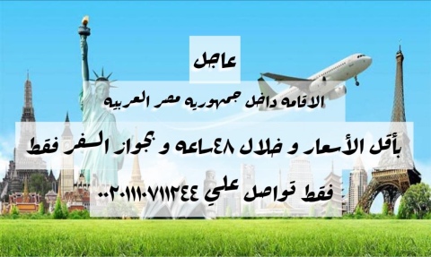 يقدم مكتب مستشارك القانوني خدمه الاقامه داخل جمهورية مصر العربيه للغير مصريين خلال 48ساعه بجواز