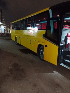 اتوبيس 50 كرسي للايجار عربيه موديل حديث سقف عالي كراسي متحركه ستاير عازله للحراره وخزنه للشنط