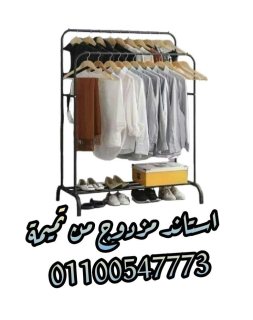 استاند ومنظم الملابس الفرنساوي الزوجي خامه معدن فوروفرجيه حامل عمودي زوجي و1رف معدن منظم